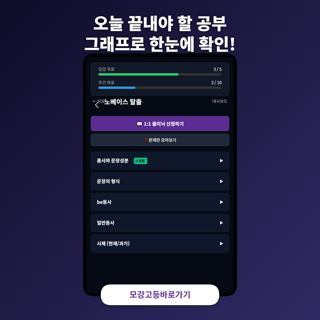 오늘 끝내야 할 공부, 미루지 말고 그래프로 꽉 채워보세요! 여러분의 노베이스 탈출을 응원합니다. 🙌